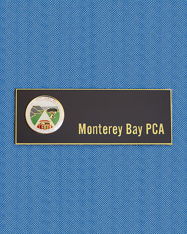 The badge has a magnetic clasp. Badges will be picked up at membership meetings or club events.
